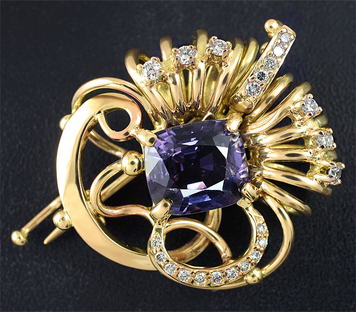 Брошь/кулон с розовато-пурпурной шпинелью и бриллиантами