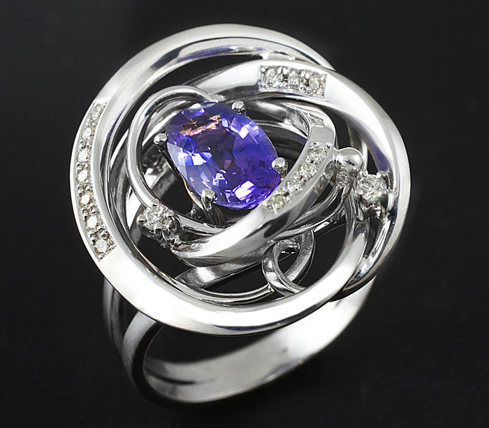 Кольцо с сапфиром со сменой цвета и бриллиантами