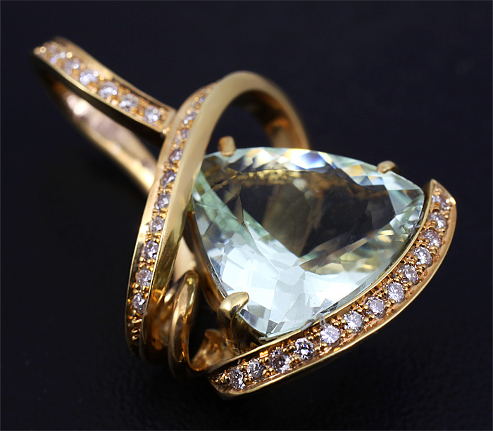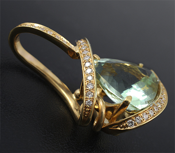 Вашему вниманию предлагается кулон из золота 585 пробы с бериллом и 40 бриллиантами! Диаметр бриллиантов 1 мм. Размеры кулона с петлей 24 х 15 мм. Вес 3,5 г. Ниже приводятся ювелирные характеристики берилла.