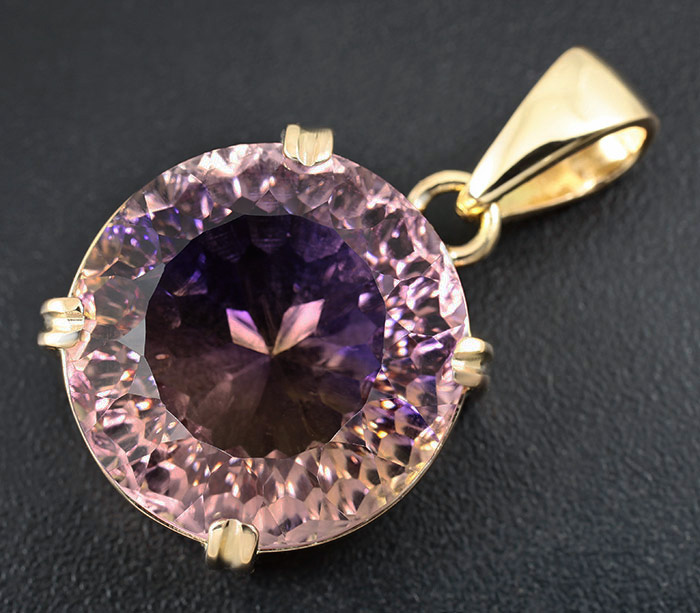 Вашему вниманию предлагается кулон из золота 585 пробы с аметрином! Размеры кулона с петлей 27 х 16 мм. Вес 5,1 г. Ниже приводятся ювелирные характеристики аметрина.