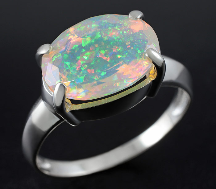 Вашему вниманию предлагается кольцо из стерлингового серебра (925 проба) c ограненным эфиопским опалом! Основные цвета опалесценции: красный/желтый/зеленый. Площадка 12 х 9 мм, высота 6 мм. Вес изделия 2,8 г. Размер 17,5. Ниже приводятся ювелирные характеристики опала.