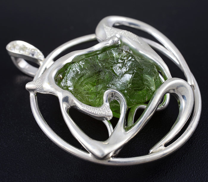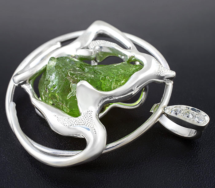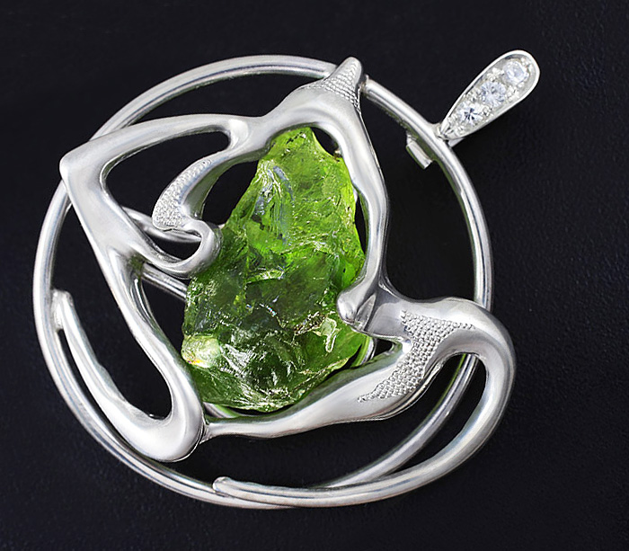 Кулон с необработанным перидотом и бесцветными сапфирами