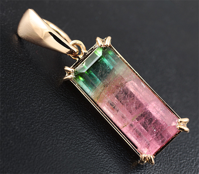 Вашему вниманию предлагается кулон из золота 585 пробы с арбузным турмалином! Размеры вставок 16 х 7 мм. Размеры кулона с петлей 30 х 9 мм. Вес 2,8 г. Ниже приводятся ювелирные характеристики турмалина.