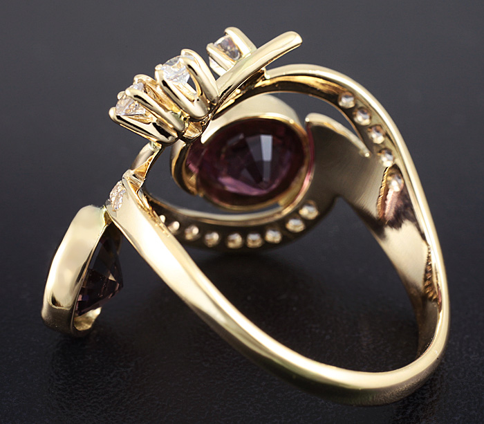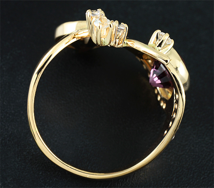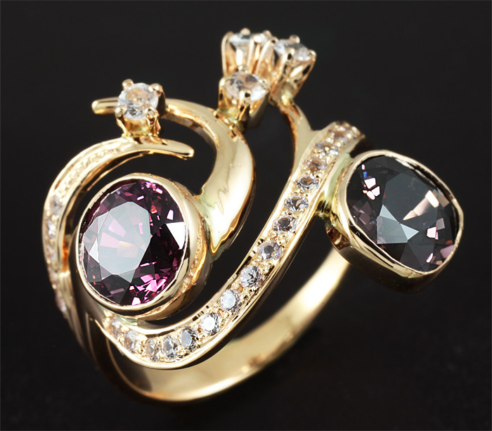 Кольцо с пурпурно-розовыми шпинелями и лейкосапфирами