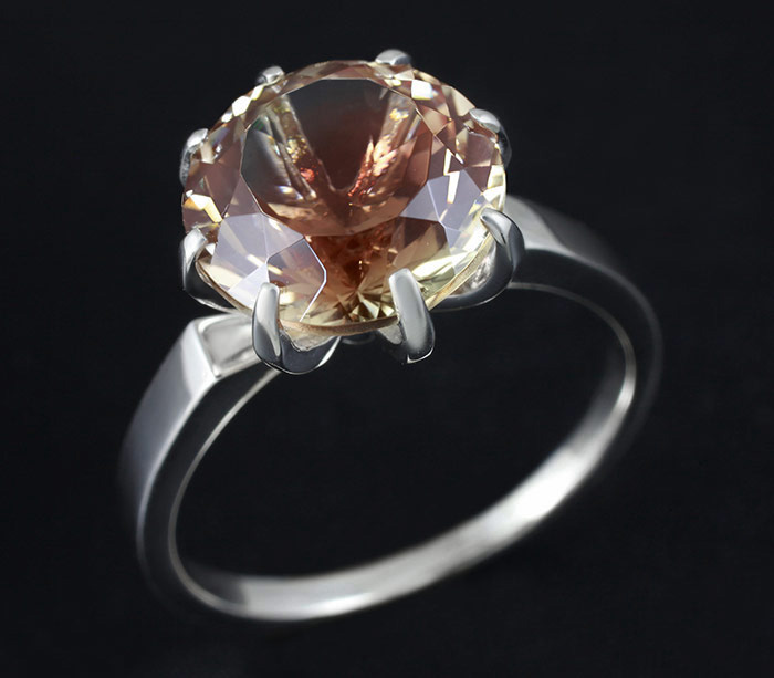 Кольцо c полихромным солнечным камнем