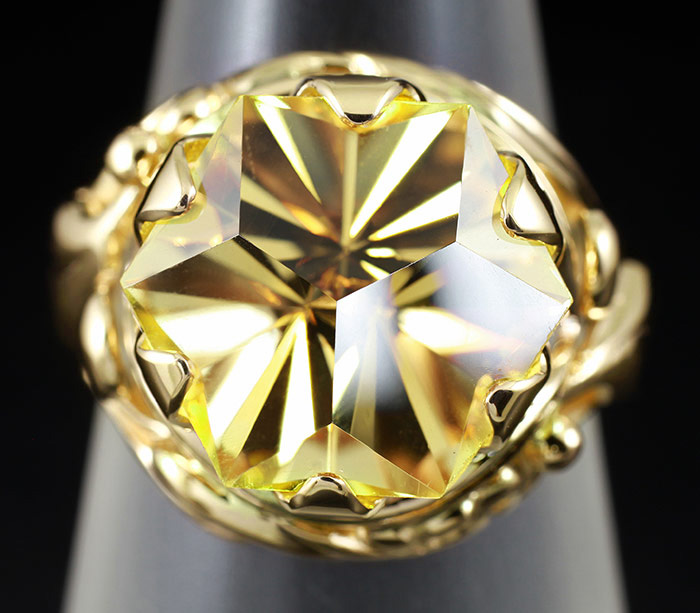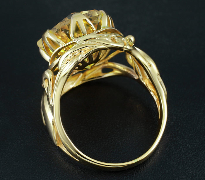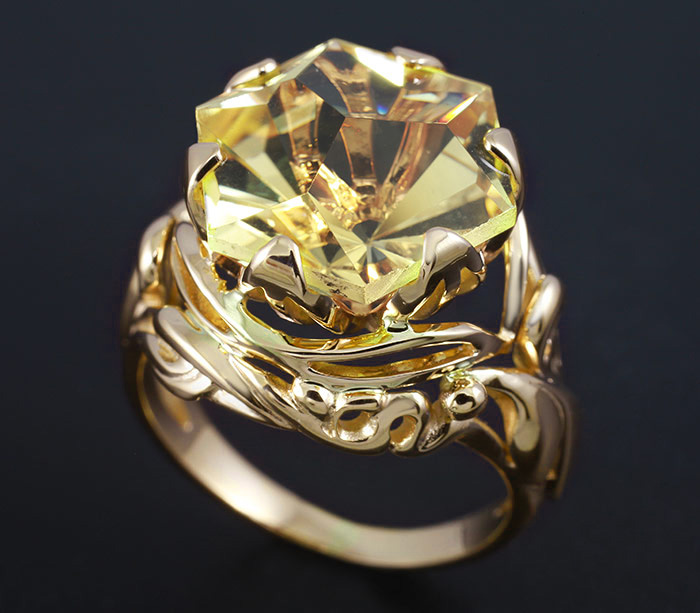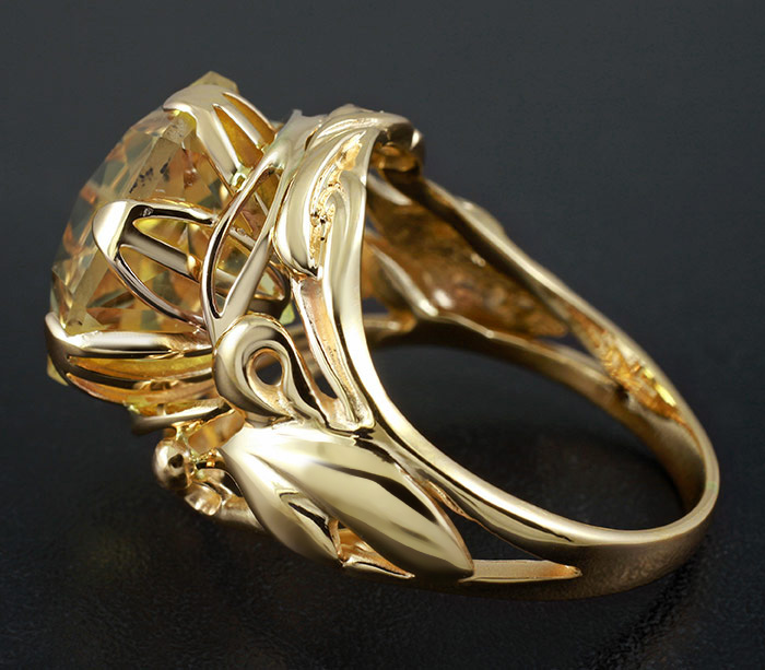 Кольцо с золотистым цитрином авторской огранки "Trinity"