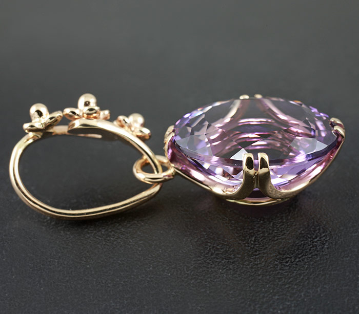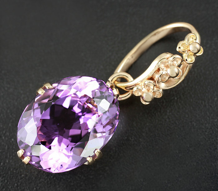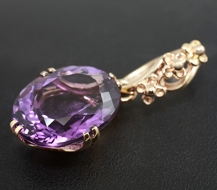Вашему вниманию предлагается кулон из золота 585 пробы с уругвайским аметистом! Размеры кулона с петлей 31 х 13 мм. Вес 3,7 г. Ниже приводятся ювелирные характеристики аметиста.