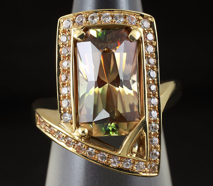 Кольцо с солнечным камнем и лейкосапфирами
