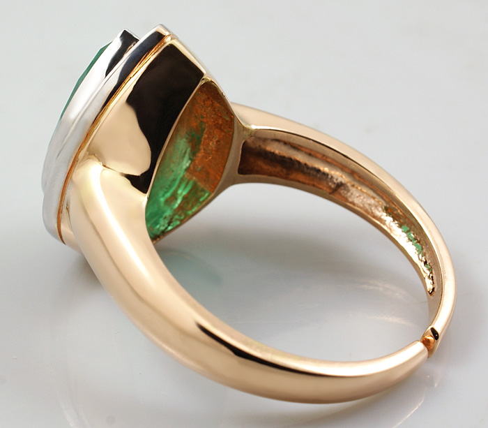Вашему вниманию предлагается кольцо из золота 585 пробы с уральским изумрудом и бриллиантами! Диаметр бриллиантов 1 мм. Площадка 17 х 12 мм, высота 8 мм. Вес изделия 6,5 г. Размер регулируемый: 18,5 и выше. Ниже приводятся ювелирные характеристики изумруда.