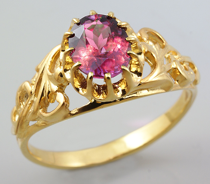 Вашему вниманию предлагается кольцо из золота 585 пробы с гранатом с эффектом смены цвета! При смене освещения, камень меняет цвет с пурпурно-розового на красный. Площадка 9 х 8 мм, высота 5 мм. Вес изделия 3 г. Размер 17. Ниже приводятся ювелирные характеристики граната.