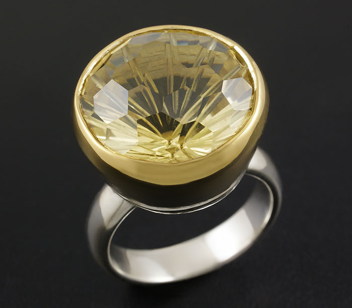 Вашему вниманию предлагается кольцо из стерлингового серебра (925 проба) c лимонным цитрином авторской огранки! Изделие частично позолочено. Площадка 16 х 16 мм, высота 12 мм. Вес изделия 8,8 г. Размер 15,5. Ниже приводятся ювелирные характеристики цитрина.
