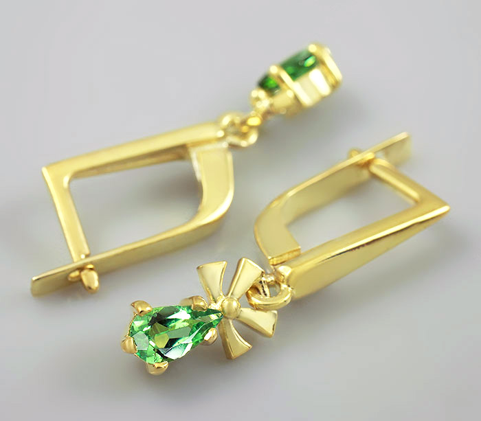 Вашему вниманию предлагаются серьги из стерлингового серебра (925 проба) с зелеными турмалинами! Изделие позолочено. Размеры серег с петлей 24 х 6 мм. Вес пары 2,8 г. Ниже приводятся ювелирные характеристики турмалинов.