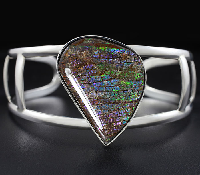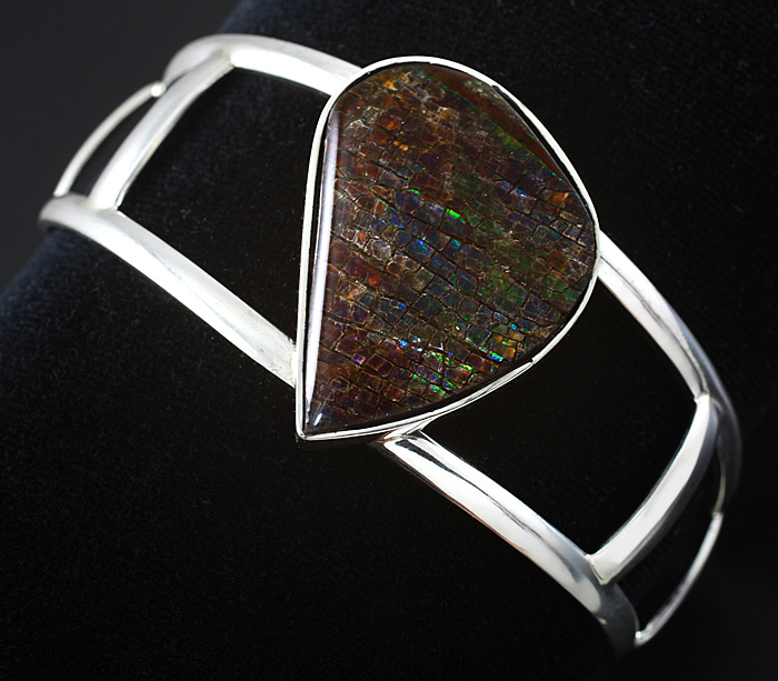 Вашему вниманию предлагается браслет из стерлингового серебра (925 проба) с аммолитом аммонита 32,86 карат! Цветовая палитра: синий/зеленый/фиолетовый. Размеры вставки 31 х 25 х 5 мм. Длина браслета по внутренней окружности 190 мм, ширина 33 мм. Вес изделия 34,4 г.