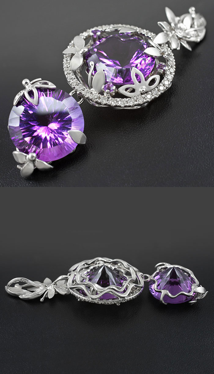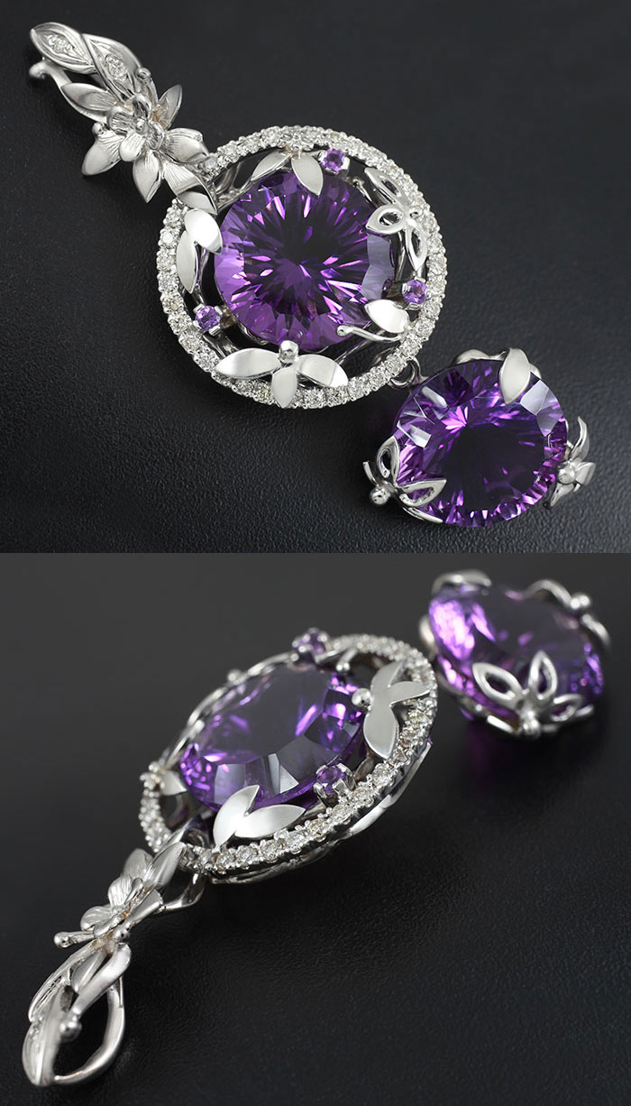 Комплект (кольцо + кулон) с уругваскими аметистами и бриллиантами