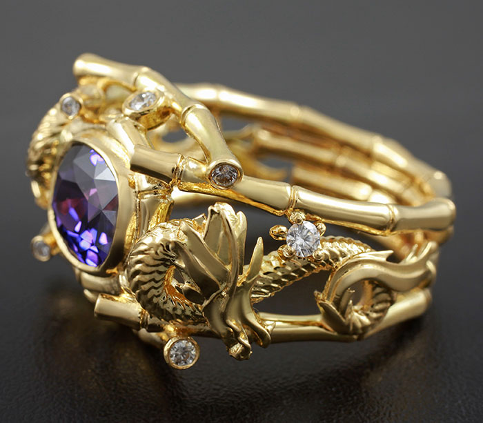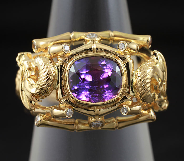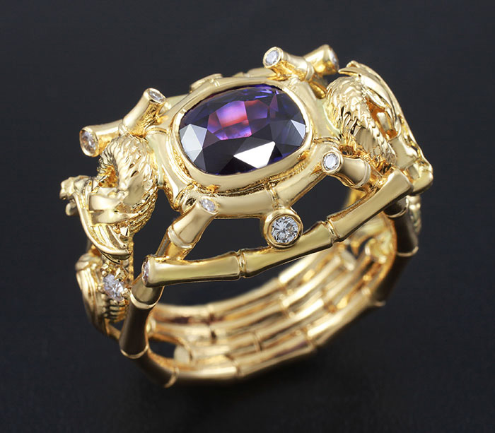 Кольцо, инкрустированое уникальным сапфиром со сменой цвета и бриллиантами