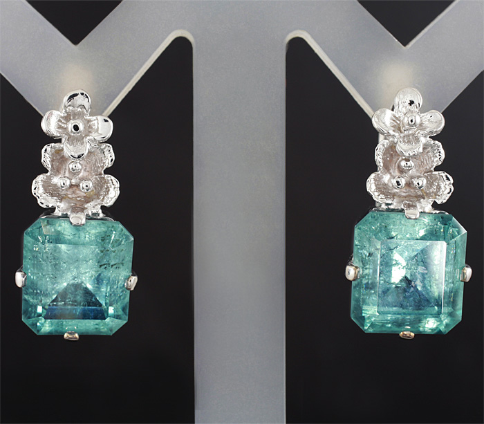 Вашему вниманию предлагаются серьги из золота 585 пробы с параиба турмалинами! Площадка серег 21 х 11 мм. Вес пары 6,5 г. Ниже приводятся ювелирные характеристики турмалинов.