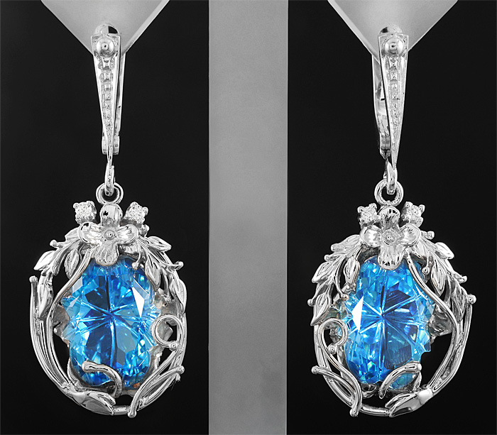 Вашему вниманию предлагаются серьги из золота 585 пробы с топазами авторской огранки и 4 бриллиантами! Диаметр бриллиантов 1,5 мм. Размеры серег с петлей 38 х 17 мм. Вес пары 11,1 г. Ниже приводятся ювелирные характеристики топазов.