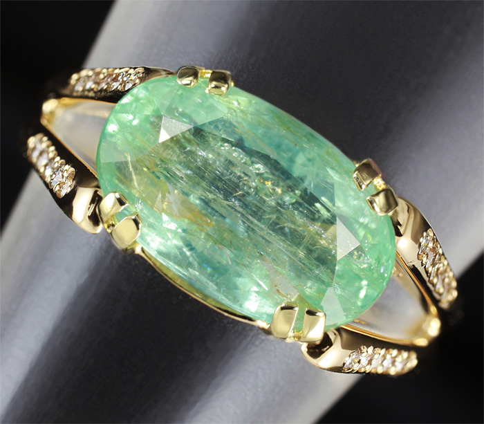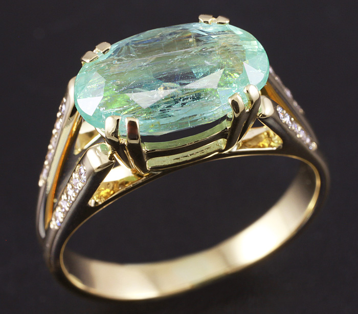 Кольцо с зеленым бериллом и 20 бриллиантами