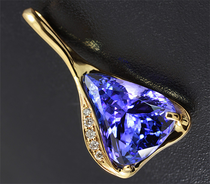 Вашему вниманию предлагается кулон из золота 585 проба с топовым танзанитом и 5 бриллиантами! Диаметр бриллиантов 1 мм. Размеры кулона с петлей 26 х 13 мм. Вес 2,2 г. Ниже приводятся ювелирные характеристики танзанита.