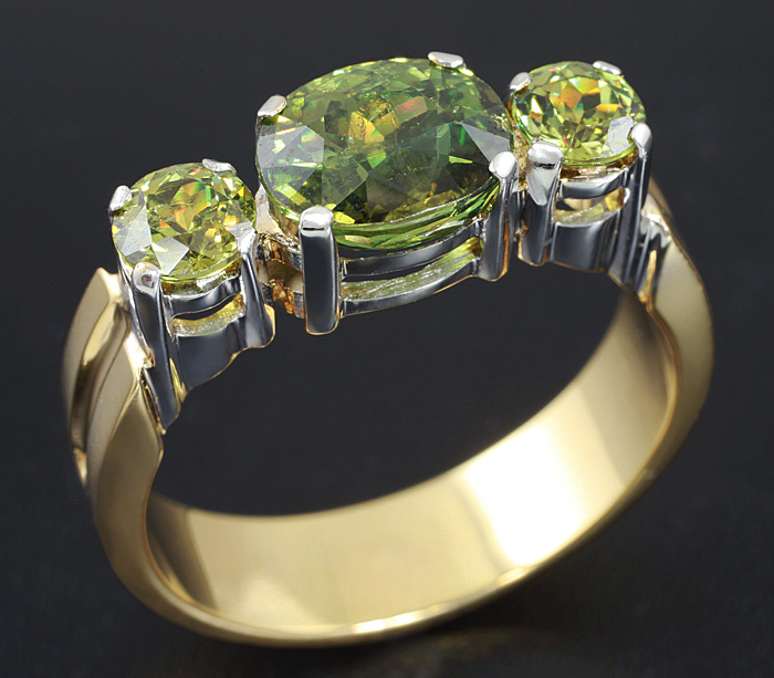 Кольцо с демантоидами гранатами