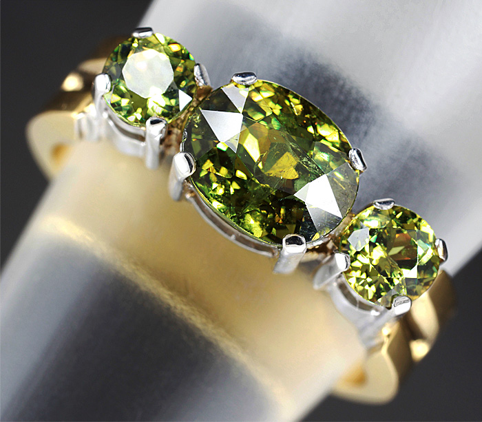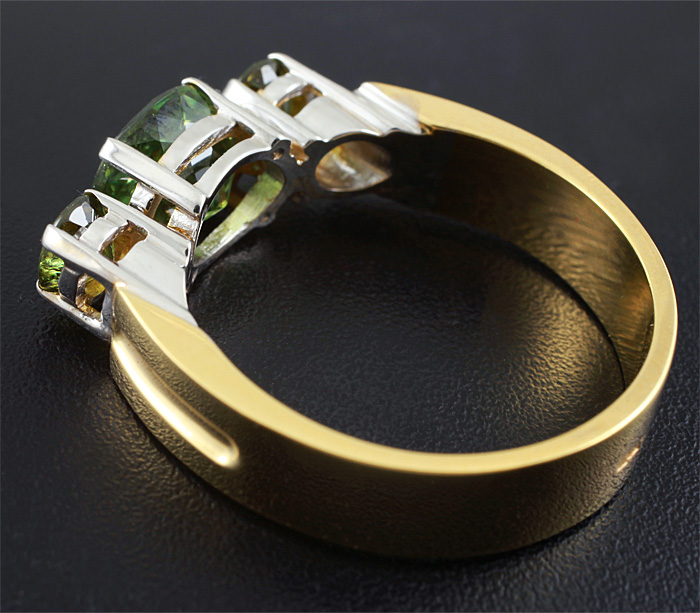 Вашему вниманию предлагается кольцо из золота 585 пробы с демантоидами гранатами! Площадка 18 х 7 мм, высота 5 мм. Вес изделия 8,2 г. Размер 20,5. Ниже приводятся ювелирные характеристики демантоидов.