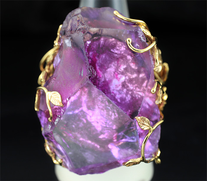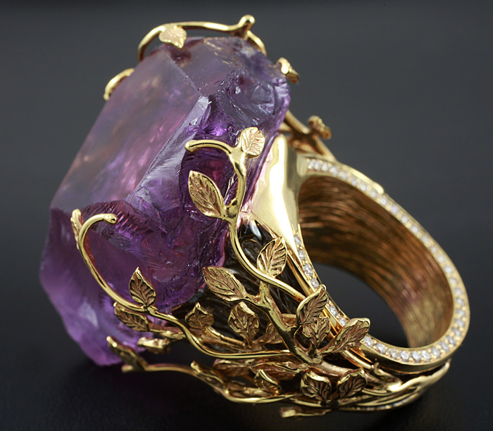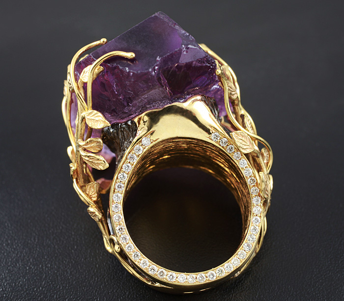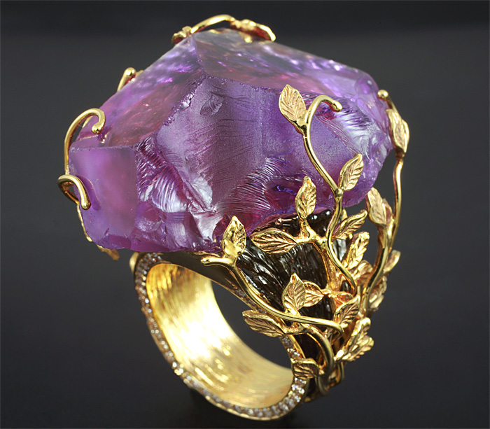 Роскошное кольцо с грубообработанным аметистом и бриллиантами