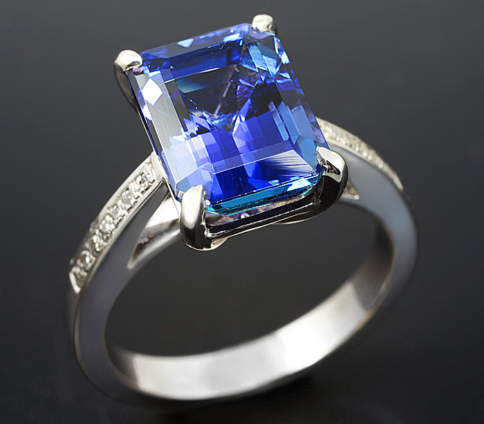 Вашему вниманию предлагается кольцо из золота 750 пробы с чистейшим танзанитом и 14 бриллиантами! Диаметр бриллиантов 1 мм. Площадка 18 х 11 мм, высота 8 мм. Вес изделия 5,3 г. Размер 17. Ниже приводятся ювелирные характеристики.