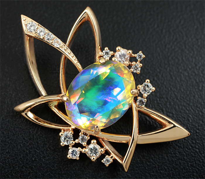 Кулон с эфиопским опалом и бесцветными цирконами
