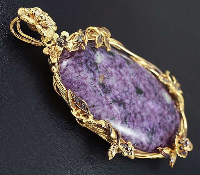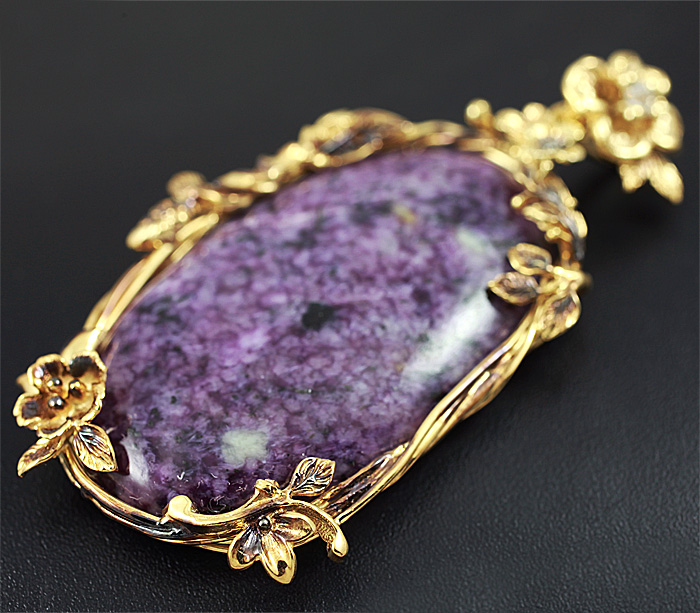 Кулон с чароитом и бесцветным цирконом