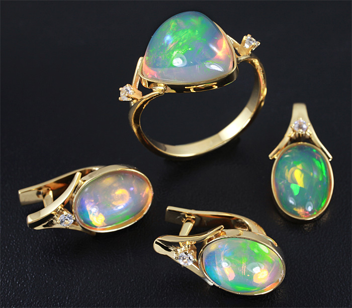 Комплект с эфиопскими кристаллическими опалами и цирконами