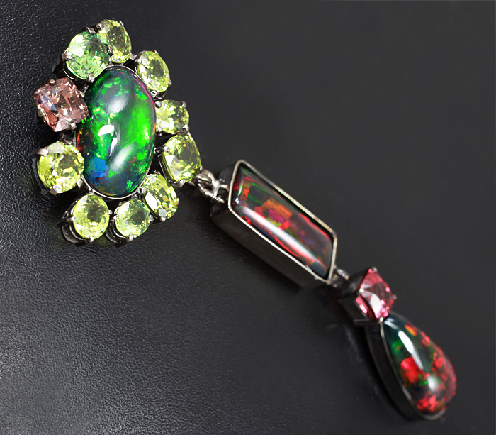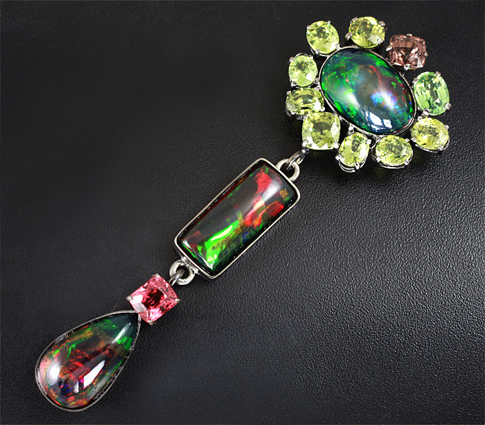 Кулон с черными опалами и самоцветами