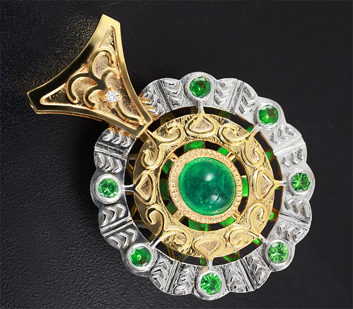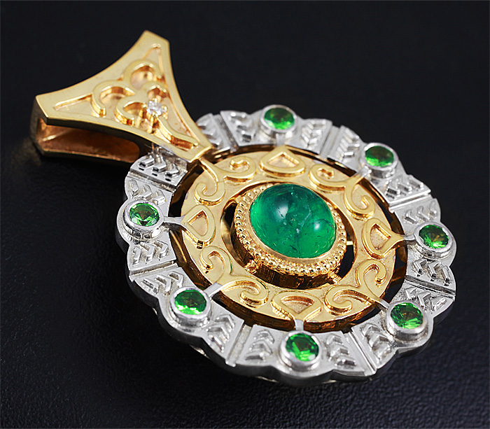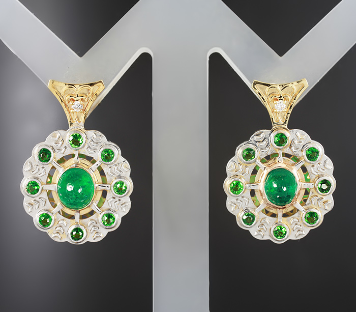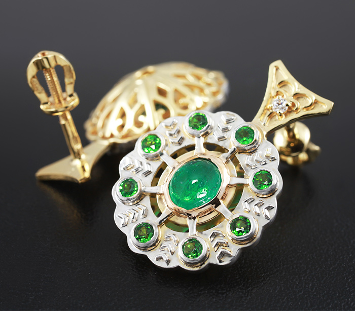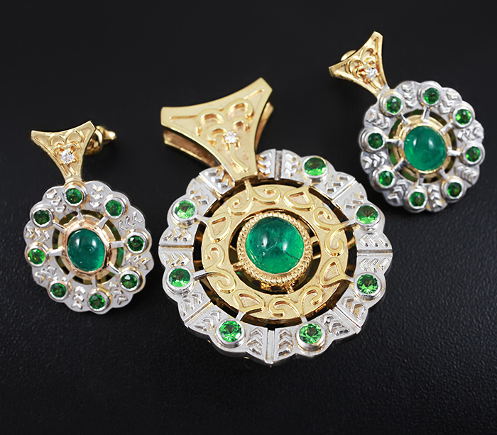 Комплект с кабошонами изумрудов, цаворитами и бриллиантами