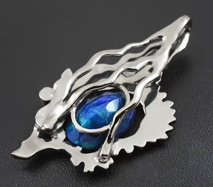 Вашему вниманию предлагается кулон из стерлингового серебра (925 проба) с ограненным черным опалом, цаворитами гранатами и синими сапфирами! Основные цвета опалесценции: красный/желтый/зеленый/синий. Изделие с чернением. Диаметр вставок от 2 мм до 2,5 мм. Площадка кулона 40 х 21 мм. Вес 4,5 г. Ниже приводятся ювелирные характеристики опала.