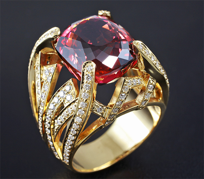 Кольцо c чистейшим полихромным турмалином и бриллиантами