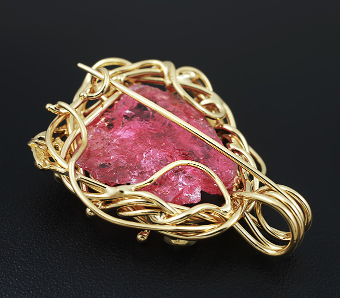 Вашему вниманию предлагается брошь/кулон из золота 750 пробы с необработанным розовым турмалином и перидотом! Диаметр перидота 4 мм. Размеры кулона с петлей 36 х 28 мм. Вес 9,4 г. Ниже приводятся ювелирные характеристики турмалина.