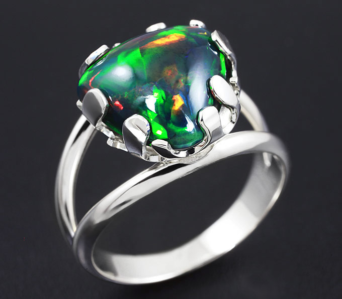 Вашему вниманию предлагается кольцо из стерлингового серебра (925 проба) c кристаллическим черным опалом! Основные цвета опалесценции: красный, желтый, зеленый. Площадка 13 х 12 мм, высота 8 мм. Вес изделия 3,7 г. Размер 16,5. Ниже приводятся ювелирные характеристики опала.