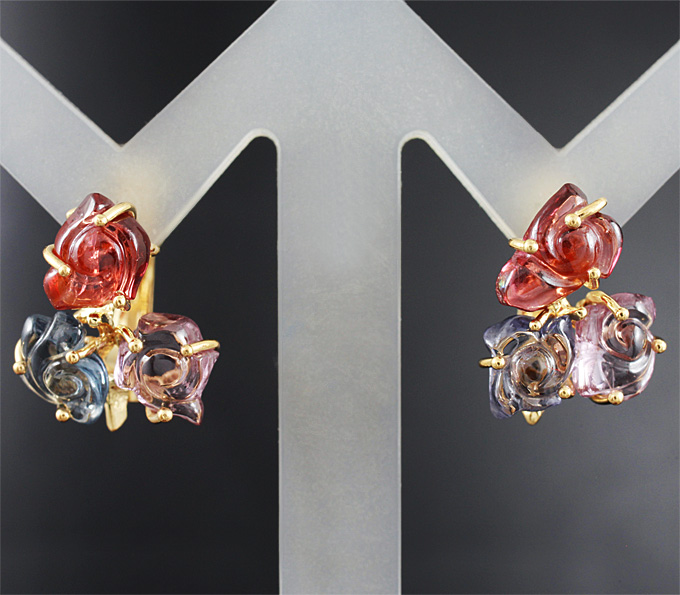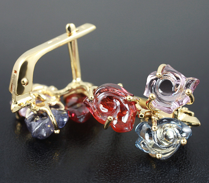 Вашему вниманию предлагаются серьги из золота 585 пробы с разноцветными шпинелями! Площадка серег 17 х 13 мм. Вес пары 4,2 г. Ниже приводятся ювелирные характеристики шпинелей