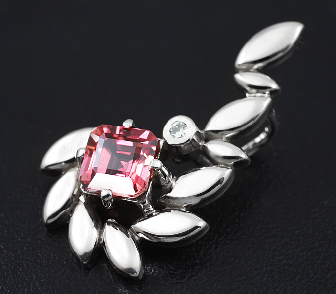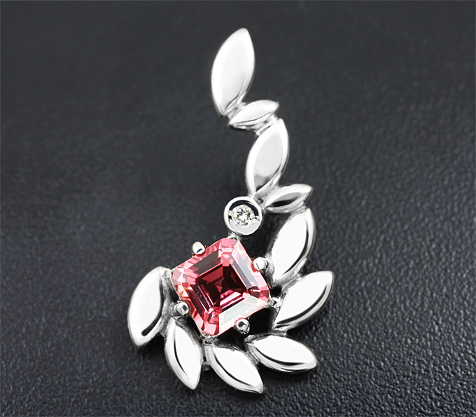 Кулон с насыщенно-оранжевым сапфиром и бриллиантом