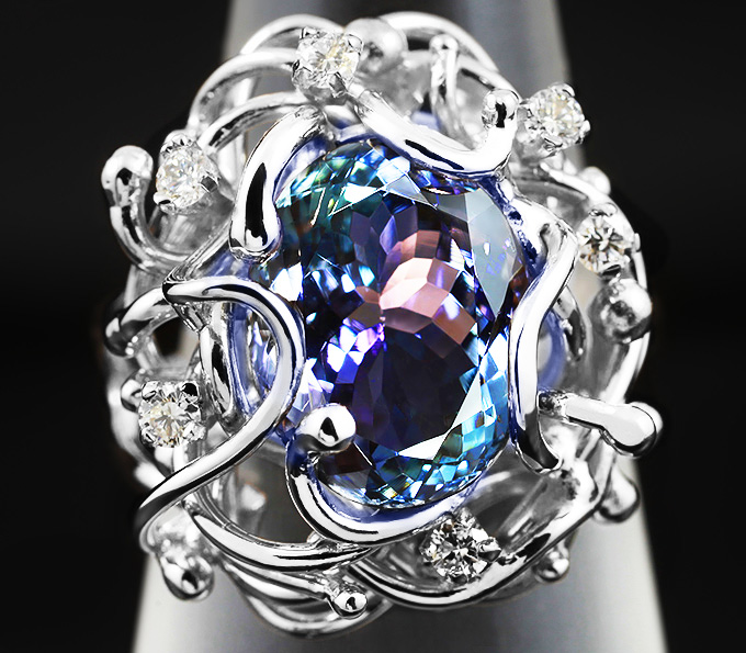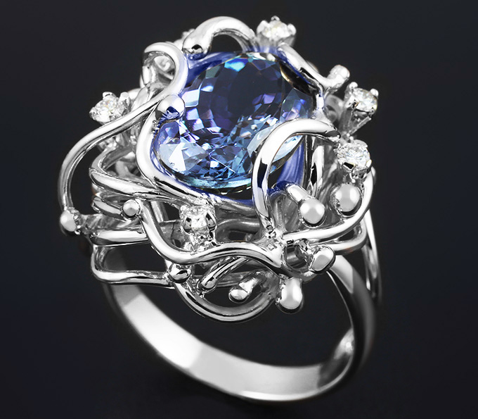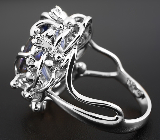 Кольцо с чистейшим полихромным танзанитом и бриллиантами