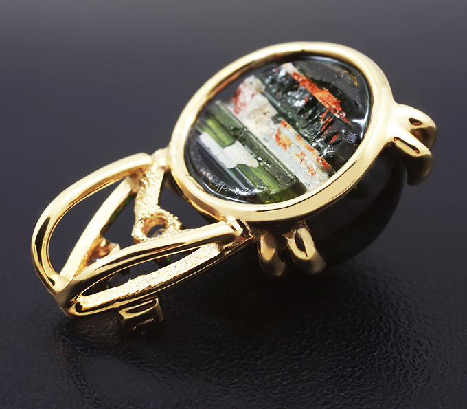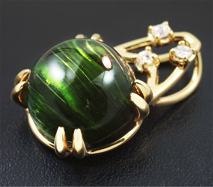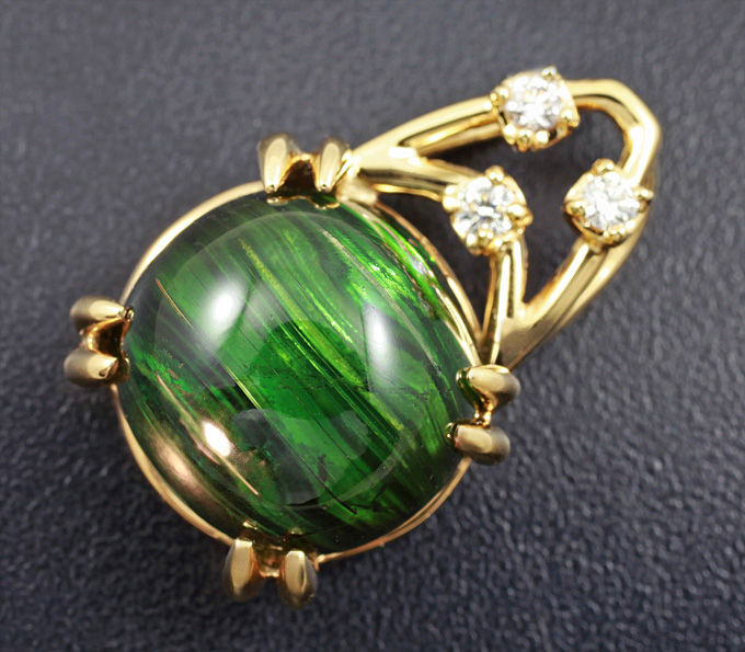 Кулон с турмалином с эффектом кошачьего глаза и бриллиантами