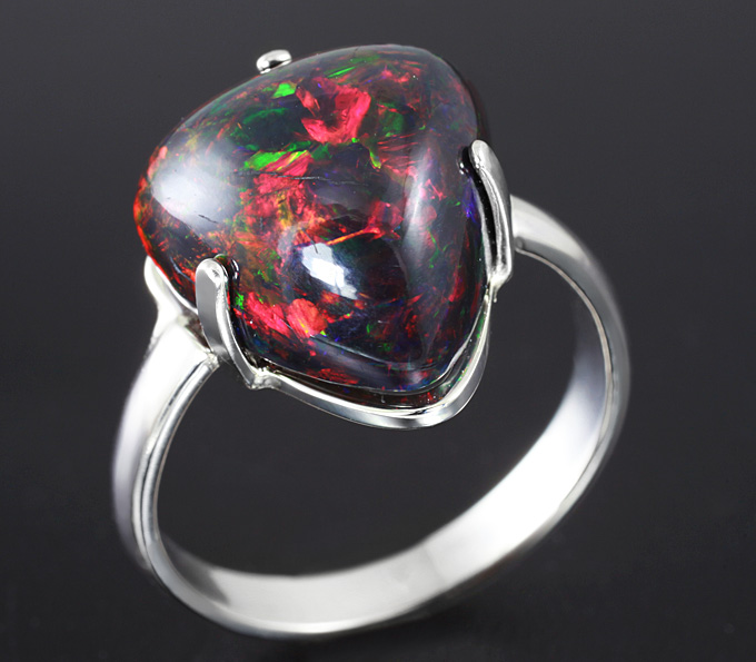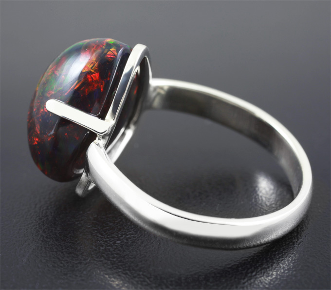 Вашему вниманию предлагается кольцо из стерлингового серебра (925 проба) c кристаллическим черным опалом! Основные цвета опалесценции: красный и зеленый. Площадка 15 х 13 мм, высота 9 мм. Вес изделия 3,5 г. Размер 17,5. . Ниже приводятся ювелирные характеристики вставки.