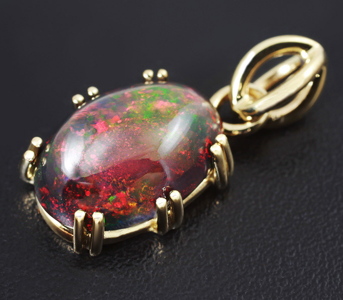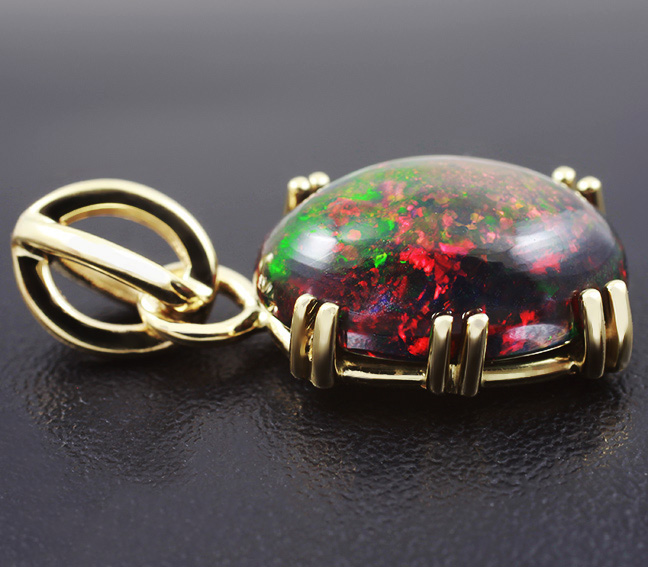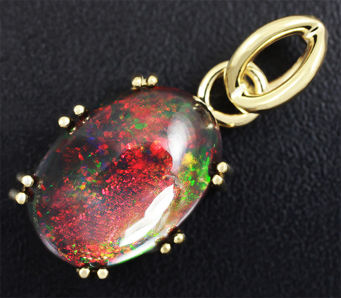 Вашему вниманию предлагается кулон из золота 585 пробы с кристаллическим черным опалом! Основные цвета опалесценции: красный и фиолетовый. Размеры кулона с петлей 21 х 10 мм. Вес 1,6 г. Ниже приводятся ювелирные характеристики вставки.