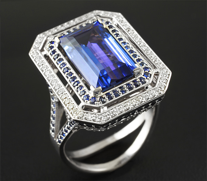Кольцо c танзанитом, синими сапфирами и бриллиантами