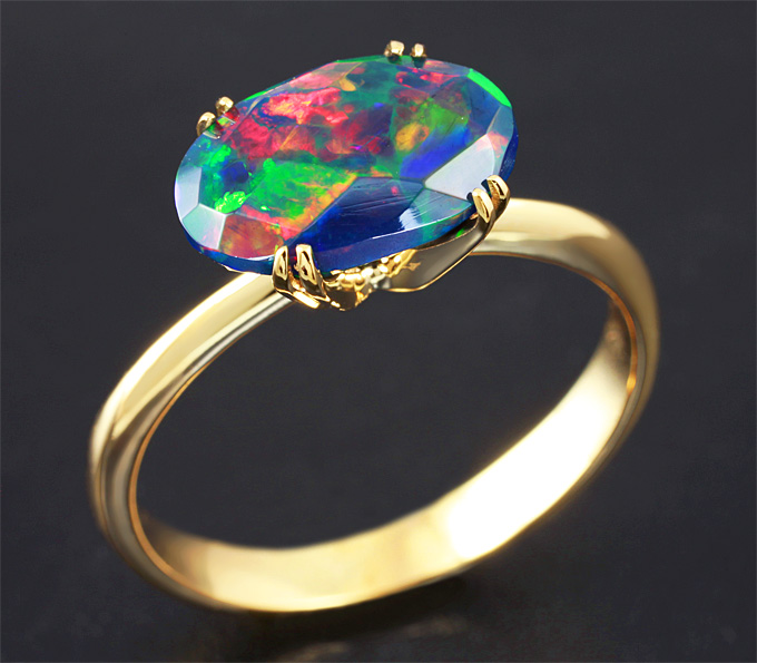 Кольцо с ограненным черным опалом