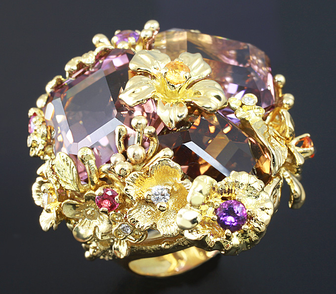 Кольцо c аметринами, аметистами, сапфирами и бриллиантами