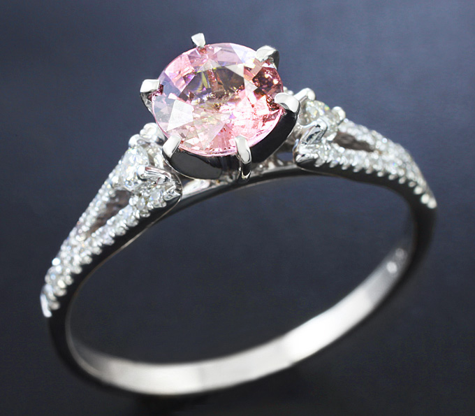 Кольцо с оранжево-розовым сапфиром и бриллиантами