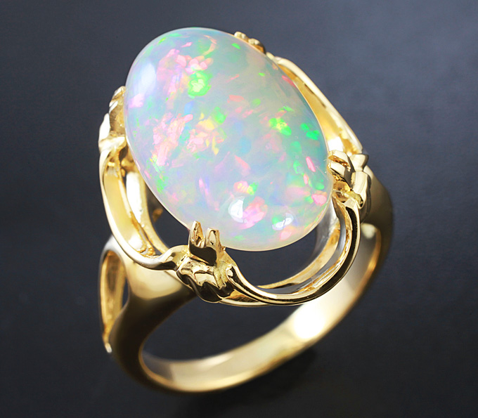 Вашему вниманию предлагается кольцо из золота 750 пробы с кристаллическим Welo опалом! Основные цвета опалесценции: красный, желтый, зеленый и синий. Площадка 19 х 15 мм, высота 11 мм. Вес изделия 6,8 г. Размер 16,5. Ниже приводятся ювелирные характеристики вставки.