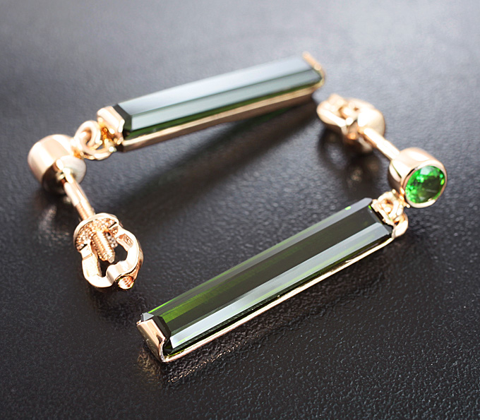 Серьги с зелеными турмалинами и цаворитами гранатами