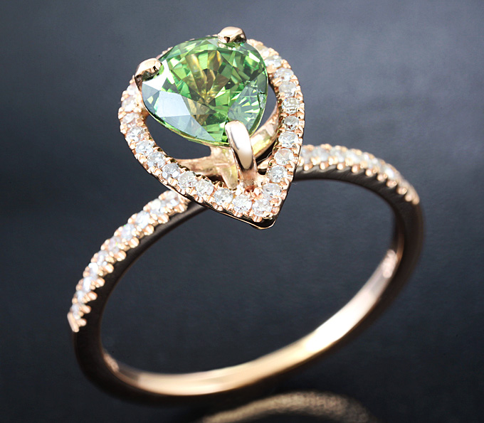 Кольцо с зеленым сапфиром и бриллиантами