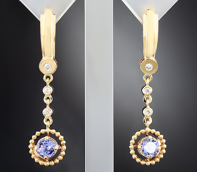 Вашему вниманию предлагаются серьги из золота 585 пробы с танзанитами и бриллиантами! Диаметр бриллиантов 2 мм. Размеры серег с петлей 44 х 11 мм. Вес пары 7,3 г. Ниже приводятся ювелирные характеристики танзанитов.